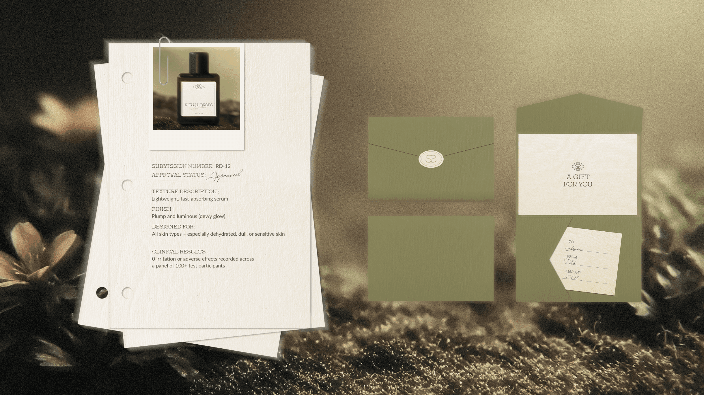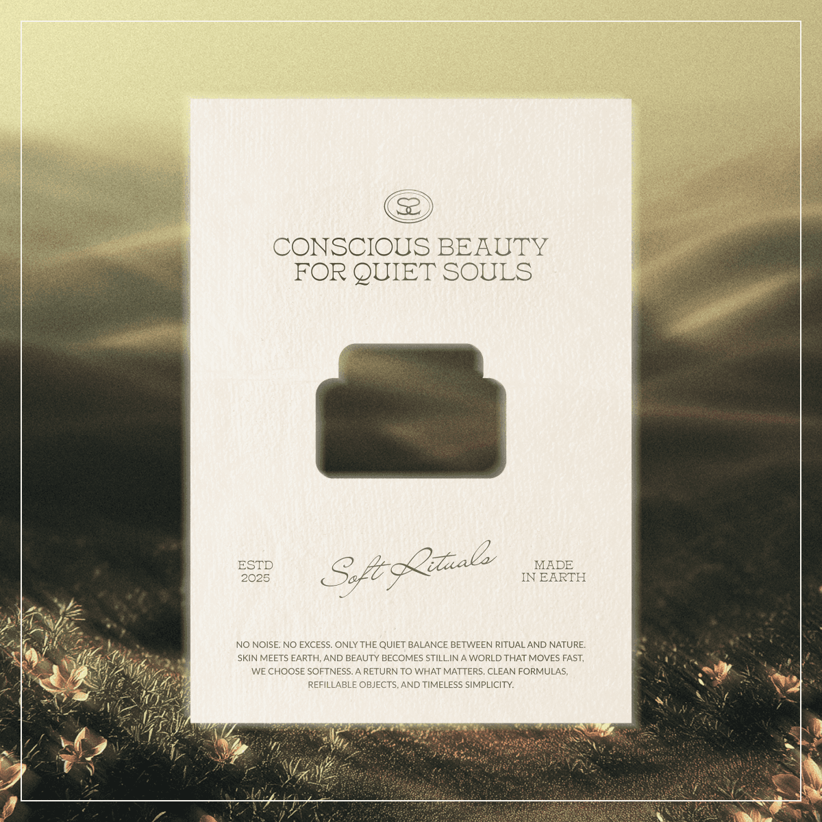 Imaginer une marque de soins minimaliste, apaisante et engagée, en travaillant une direction artistique douce, des teintes sourdes, une identité visuelle sobre et un storytelling sensoriel. Créer une expérience de marque à la fois visuelle et tactile, où la beauté devient un rituel intime, lent, et profondément ancré.